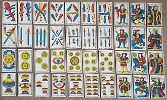 La ronda est un jeu de cartes qui se joue avec un jeu de cartes espagnoles (organisé en quatre enseignes : coupes, épées, bâtons et deniers) de 40 cartes. Pour chaque enseigne on trouve des cartes numérotées de 1 à 7 ainsi que le valet (10), le cavalier (11) et le roi (12). On remarque que les numéros 8 et 9 sont absents de ce jeu.
