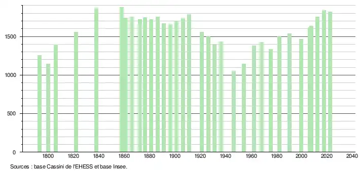 - ↑ Fiches Insee - Populations de référence de la commune pour les années 2006, 2007, 2008, 2009, 2010, 2011, 2012, 2013, 2014, 2015, 2016, 2017, 2018, 2019, 2020, 2021 et 2022.