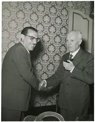 Rosario Lanza avec le président de la Chambre des Députés, Sandro Pertini, en 1968.