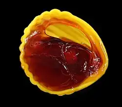 - Lorsque le sirop de sucre est prêt, il est versé dans des pots, puis transvasé dans les coquillages. La température du sirop de sucre est à 138 °C.