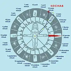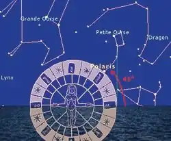 - étoile polaire au centre de la roue ;