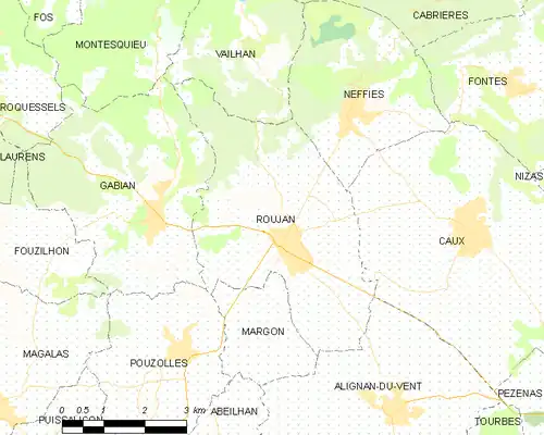 Roujan [ʁu.ʒɑ̃] (en occitan Rojan [ru.'d͡ʒan]) est une commune française située dans le centre du département de l'Hérault, en région Occitanie.