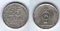 | 25 cents | Nom du pays, date et valeur | Amoirires | Acier plaqué cuivre | 16,0 mm | 1,68 g | 1,2 mm | 2005 | ||