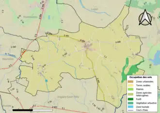 L'occupation des sols de la commune, telle qu'elle ressort de la base de données européenne d’occupation biophysique des sols Corine Land Cover (CLC), est marquée par l'importance des territoires agricoles (95,4 % en 2018), en diminution par rapport à 1990 (97,1 %). La répartition détaillée en 2018 est la suivante : zones agricoles hétérogènes (95,3 %), forêts (2,6 %), zones urbanisées (1,9 %), prairies (0,1 %)[22].