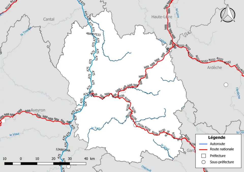 - la DIR Massif Central, entre le col de Jalcreste et Balsièges[22],[21].
