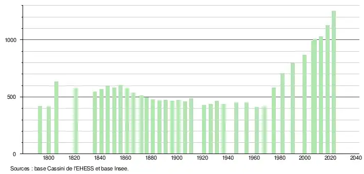 - ↑ Fiches Insee - Populations de référence de la commune pour les années 2006, 2007, 2008, 2009, 2010, 2011, 2012, 2013, 2014, 2015, 2016, 2017, 2018, 2019, 2020, 2021 et 2022.