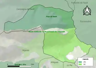et une ZNIEFF de type 2[Note 5],[30] : le « massif de Quérigut et forêt du Carcanet (Donezan) » (12 106 ha), couvrant 32 communes dont 18 dans l'Ariège, 10 dans l'Aude et 4 dans les Pyrénées-Orientales[34].