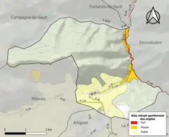 Les mouvements de terrains susceptibles de se produire sur la commune sont soit des chutes de blocs, soit des glissements de terrains, soit des mouvements liés au retrait-gonflement des argiles. Près de 50 % de la superficie du département est concernée par l'aléa retrait-gonflement des argiles, dont la commune de Rouze[42]. L'inventaire national des cavités souterraines permet par ailleurs de localiser celles situées sur la commune[43].