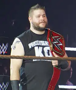 Kevin Owens défend le championnat universel contre Roman Reigns.