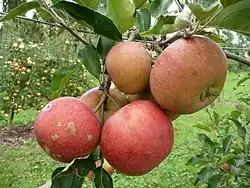 La pomme est striée de rouge sur fond orange. L'arbre est d'une vigueur modeste, son développement et sa production peuvent être améliorés par greffage sur MM106 ou mieux M9.