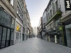 La rue est bordée de nombreuses boutiques de parfumerie et vêtements ainsi que de deux centres commerciaux : le City 2 et la galeria Inno[7]. Parmi ces boutiques, on trouve la majorité des marques de vêtements et accessoires grand public présentes en Belgique.