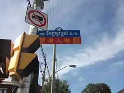 Également connue sous le nom de Ottawa Road #36, la rue Somerset Ouest commence à la promenade Queen Elizabeth à l'est et continue vers l'ouest jusqu'à la rue Wellington Ouest où elle se termine à Somerset Square. Entre la rue Bay à l'est et la rue Preston à l'ouest, la rue Somerset Ouest est l'épine dorsale du quartier chinois d'Ottawa. La rue Preston est le centre de la Petite Italie d'Ottawa. La zone entre les rues Bank et O'Connor est connue sous le nom de village Somerset.