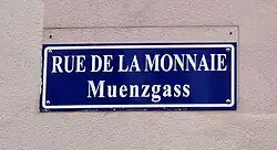Des plaques de rues bilingues, à la fois en français et en alsacien, sont mises en place par la municipalité à partir de 1995[3]. C'est le cas de la Muenzgass.