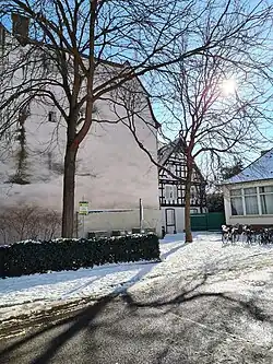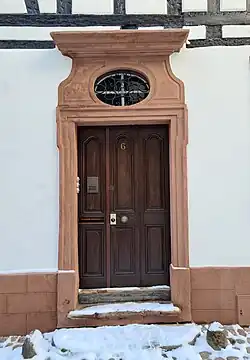 - Cette maison à colombages du XVIIIe siècle, qui jouxte l'école, est dotée d'une porte à imposte donnant sur la rue[1].