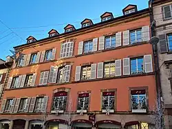 - À l'angle avec le no 2 de la rue du Sanglier, l'édifice conserve quelques éléments datant du Moyen Âge[2]. Un restaurant, Zum goldenen Lamm, y est mentionné en 1686[7].