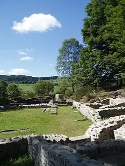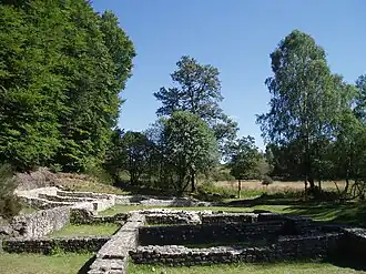 Les vestiges situés près du ruisseau sont ceux d'une somptueuse villa dotée de l'eau courante et de chauffage et décorée de mosaïques et d'enduits peints. La partie de la villa située au sud-est est plus récente que la partie située au nord-ouest. À la fin du IIe siècle ou au début du IIIe siècle, sans doute à la suite d'un incendie, le bâtiment a été reconstruit et agrandi.