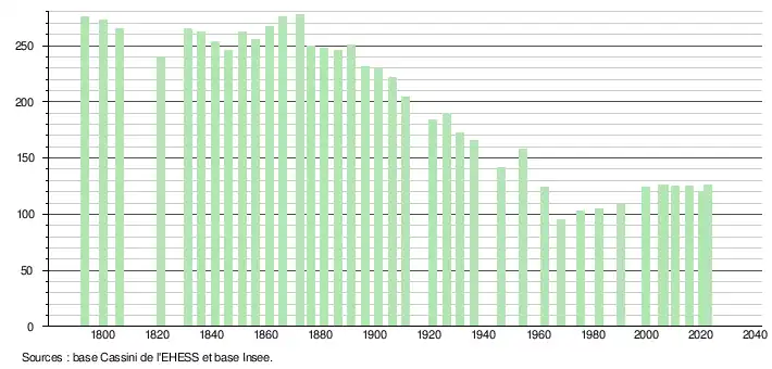 - ↑ Fiches Insee - Populations de référence de la commune pour les années 2006, 2007, 2008, 2009, 2010, 2011, 2012, 2013, 2014, 2015, 2016, 2017, 2018, 2019, 2020, 2021 et 2022.