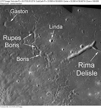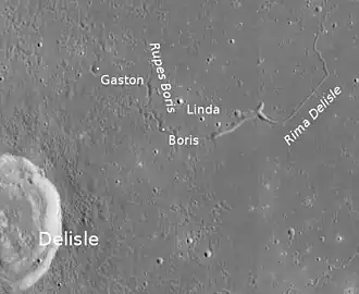 Le Rupes Boris est une falaise lunaire située au Nord-Ouest de la face visible de la Lune.