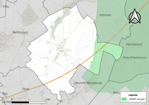 Le territoire communal comprend une ZNIEFF de type 1[Note 2] : le bois d'Havrincourt, d’une superficie de 2 406 ha et d'une altitude variant de 68 à 132 mètres. C’est la zone boisée la plus vaste du Cambrésis essentiellement occupé par de grandes cultures[12].