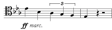 Un exemple est le thème principal du premier mouvement de sa Symphonie no 4 en mi bémol majeur, à la mesure 43[4].