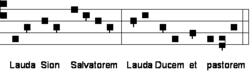 - Il faut faire une exception pour les hymnes, syllabiques, mais dont la mélodie supporte de nombreux couplets. Pour ces pièces, il est normal que la mélodie soit indépendante du texte. Le texte continue à imposer ses accents (d'intensité) et ses attaques (incises et distinction verbale).