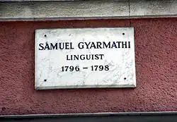 Sámuel Gyarmathi, né le à Kolozsvár (Cluj) et mort dans la même ville le , est un linguiste hongrois qui participe du rattachement de sa langue au groupe ouralo-altaïque.