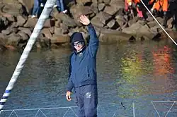 Sébastien Josse au départ de la Transat Jacques-Vabre 2013. | |