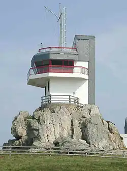 Ancien sémaphore du Créac'h à Ouessant (Finistère), au sommet de la tour de vigie. La passerelle de veille offre aux guetteurs sémaphoristes une vue panoramique.Ancien sémaphore des Mathes.