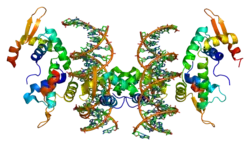 Un autre exemple de situation où le polymorphisme d’une seule position d’acide aminé peut avoir des conséquences importantes sur l’organisme est le gène FOXP2. Lorsque l’arginine en position 553 est remplacé par une histidine, l’hélice alpha qui contient la mutation adopte des caractéristiques différentes de manière à modifier l’action du domaine concerné en diminuant la capacité de la protéine à lier l’ADN et aussi à agir comme trans-activateur d’autres gènes. Ainsi, cette mutation peut induire un développement anormal de certaines structures neurales jouant un rôle dans la physiologie de la parole et du langage. Cette même arginine est extrêmement bien conservée dans d’autres protéines ayant des domaines de ce type, dont plusieurs ont un rôle de reconnaissance des homéoboîtes : les mutations de ce type peuvent ainsi jouer un rôle important dans des processus développementaux[15].