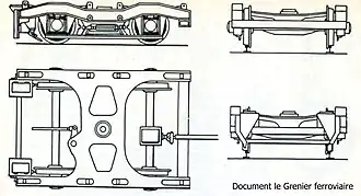 | Liaison caisse bogie | crapaudine sur le châssis[note 2] |