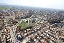 ![]() ![]() ![]() De haut en bas et de gauche à droite : centre-ville de Sétif, la Mosquée Al Atiq, le tramway en face du siège de la Wilaya de Sétif, le centre commercial Park Mall Sétif |