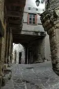 Elle abrite de belles demeures avec tour-escalier, colombages et encorbellements. Parmi les bâtiments remarquables : la maison des Consuls, la maison de Jeanne, le Sestayral qui est un marché aux grains, la fontaine romane et l'église Saint-Sauveur.