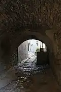 La cité médiévale, bâtie sur le versant sud-est de la butte (pour avoir un meilleur éclairage du soleil), était jadis protégée par un rempart et quatre portes fortifiées dont deux subsistent encore, celle du Peyrou et celle du Latazou.