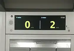 Dans le métro, ce système s'appuie sur un écran à diodes qui vient remplacer les anciens panneaux de direction en milieu de quai[4]. Il indique le temps d'attente avant les deux prochains trains, ou avant le prochain train si la station est très proche du terminus (dans le sens départ)[4]. Dans le cas des lignes à branches (ligne 7 et ligne 13), dans le sens concerné par l'embranchement, ce sont les temps des quatre prochains trains (deux pour chaque branche) ainsi que leur destination qui sont affichés[4].