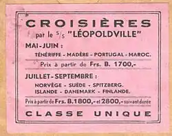 Il assure la liaison entre la Belgique et le Congo belge, mais il est aussi utilisé par la Compagnie pour organiser des croisières en Atlantique (Tenerife — Madère — Portugal — Maroc) et en Scandinavie (Norvège — Suède — Spitzberg — Islande — Danemark — Finlande).