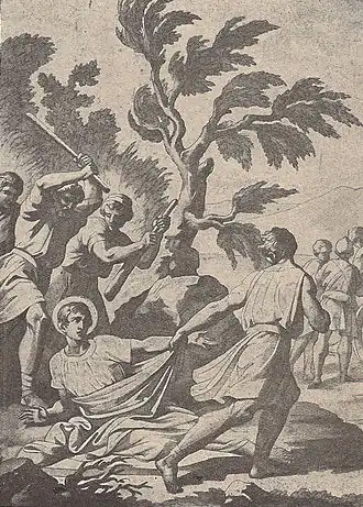 Vers 369, Athanaric roi des Tervinges entreprit de persécuter les chrétiens vivant sur son territoire[5]. Un noble goth entama la persécution des chrétiens dans la région où vivait Sabas. Quand ses hommes arrivèrent dans le village de Sabas, ils forcèrent les habitants à participer à un repas sacrificiel païen. Selon le conte, les villageois non-chrétiens, pour aider leurs voisins chrétiens, tentèrent de duper les autorités en échangeant les mets du sacrifice avec d’autres mets. Toutefois, Sabas refusa ostensiblement l’ensemble des nourritures.