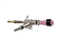 - Le système à dépression, simple et économique, un venturi, à air comprimé, intégré au pistolet aspire l'abrasif depuis son réservoir.