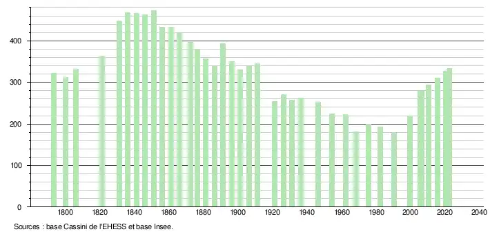 - ↑ Fiches Insee - Populations de référence de la commune pour les années 2006, 2007, 2008, 2009, 2010, 2011, 2012, 2013, 2014, 2015, 2016, 2017, 2018, 2019, 2020, 2021 et 2022.