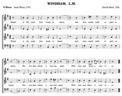 Le son de cette période musicale, de même que d’une certaine manière The Sacred Harp en général, peut être observé en comparant des versions de l’hymne bien connue « Amazing Grace », qui est familière de bien des Américains dans une forme telle que celle-ci :