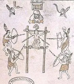 Lors de certains sacrifices pour le dieu Xipe Totec, on mettait la victime à mort à coups de flèches[5].