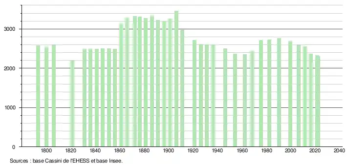 2 300 hab. (2022 en évolution de −2,79 % par rapport à 2016)
