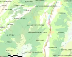 Les communes les plus proches[Note 2] sont[5] : Saint-Pierre-de-Belleville (1,5 km), Saint-Georges-des-Hurtières (2,2 km), Argentine (3,1 km), Épierre (3,6 km), Le Pontet (4,0 km), Saint-Léger (5,3 km), Bourget-en-Huile (5,4 km), Montendry (5,4 km).