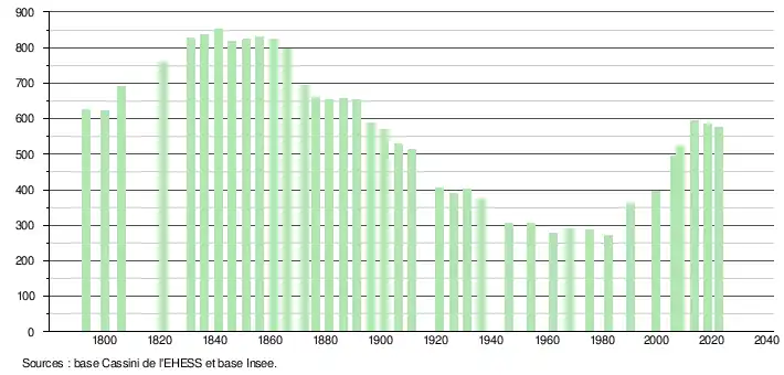 - ↑ Population municipale de référence en vigueur au 1er janvier 2025, millésimée 2022, définie dans les limites territoriales en vigueur au 1er janvier 2024, date de référence statistique : 1er janvier 2022.