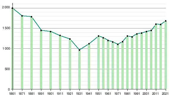 Le recensement de 2011 y dénombre 1 604 habitants, soit 10,7 % de plus qu'en 2006[6],[7].
