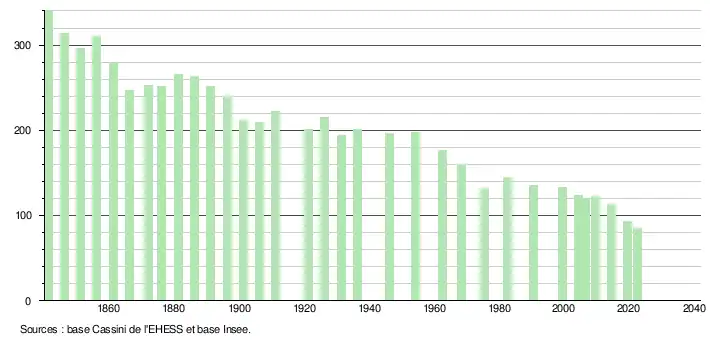 - ↑ Population municipale de référence en vigueur au 1er janvier 2025, millésimée 2022, définie dans les limites territoriales en vigueur au 1er janvier 2024, date de référence statistique : 1er janvier 2022.