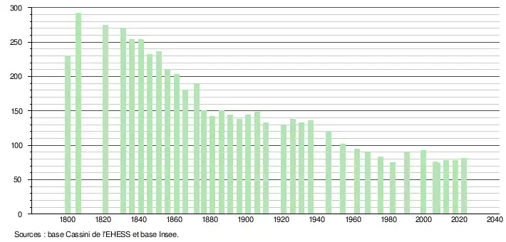 (Sources : Ldh/EHESS/Cassini jusqu'en 1999[33] puis Insee à partir de 2006[34].)