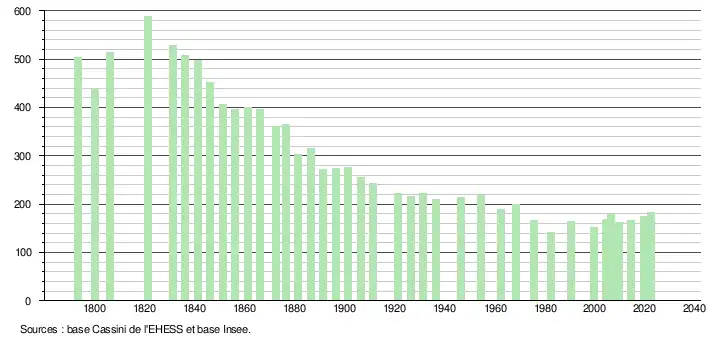 (Sources : Ldh/EHESS/Cassini jusqu'en 1999[25] puis Insee à partir de 2006[26].)
