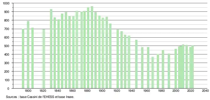 - ↑ Population municipale de référence en vigueur au 1er janvier 2025, millésimée 2022, définie dans les limites territoriales en vigueur au 1er janvier 2024, date de référence statistique : 1er janvier 2022.