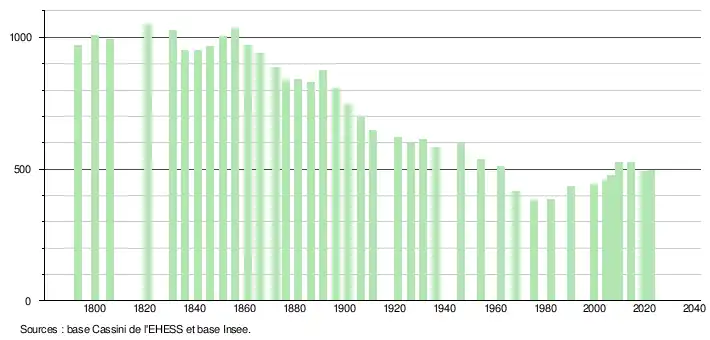 - ↑ Fiches Insee - Populations de référence de la commune pour les années 2006, 2007, 2008, 2009, 2010, 2011, 2012, 2013, 2014, 2015, 2016, 2017, 2018, 2019, 2020, 2021 et 2022.
