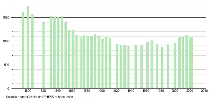 1 077 hab. (2022 en évolution de −4,35 % par rapport à 2016)